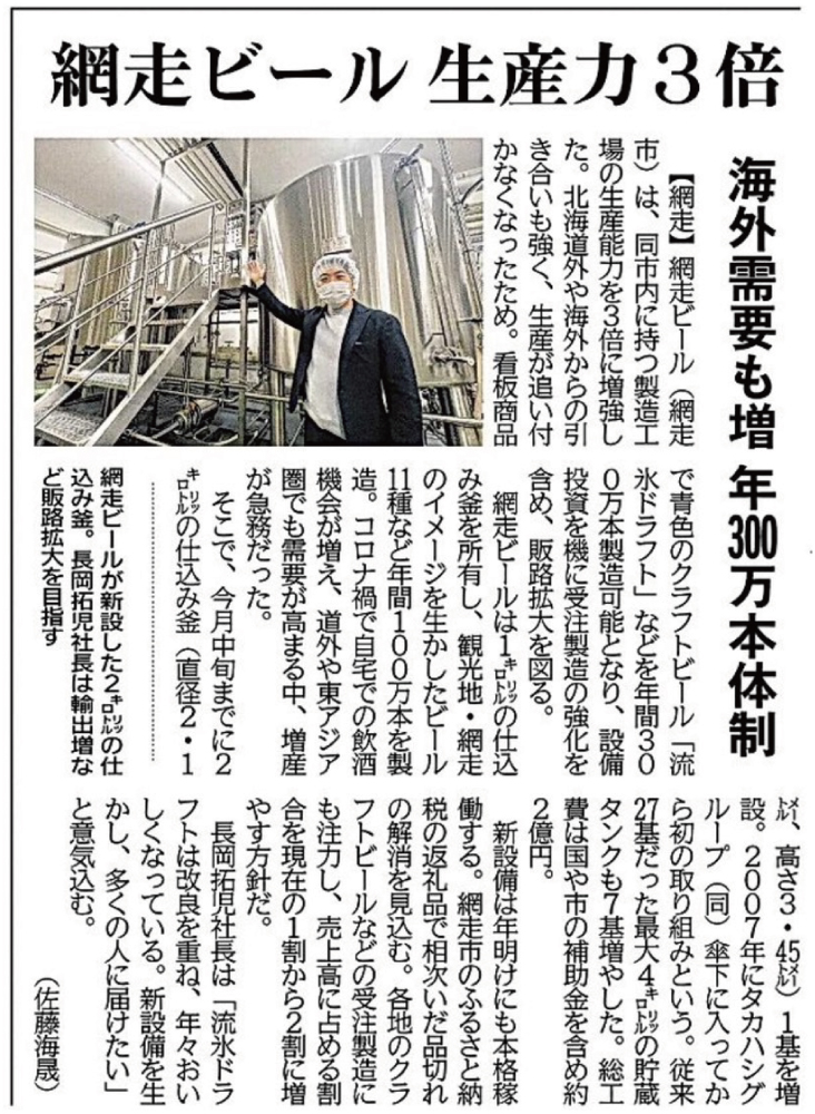 北海道新聞に記事が掲載されました