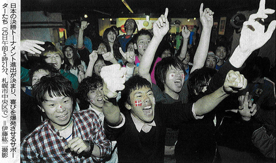 アメリカンカフェダイニングDD、パブリックビューイング(日本対デンマーク)の模様が読売新聞に掲載されました。