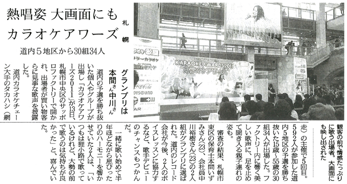 北海道新聞にカラオケアワーズ2011の記事が掲載されました