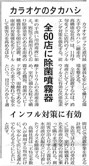 日本経済新聞にタカハシ全店のインフルエンザ対策の記事が掲載されました