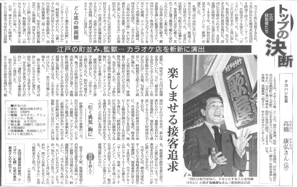 北海道新聞 北の経営者たち「トップの決断」に弊社社長が紹介されました
