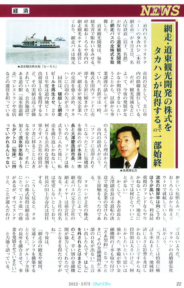 月刊クオリティ5月号に記事が掲載されました