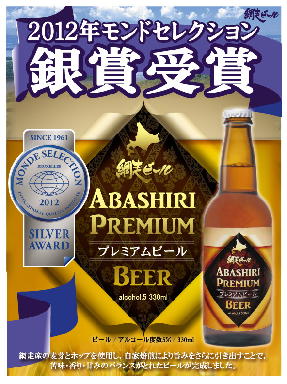 網走ビール「ABASHIRIプレミアムビールがモンドセレクション銀賞受賞!」
