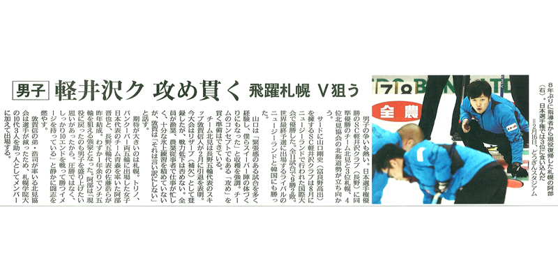 タカハシグループ所属のカーリング選手、阿倍晋也の記事が北海道新聞に掲載されました