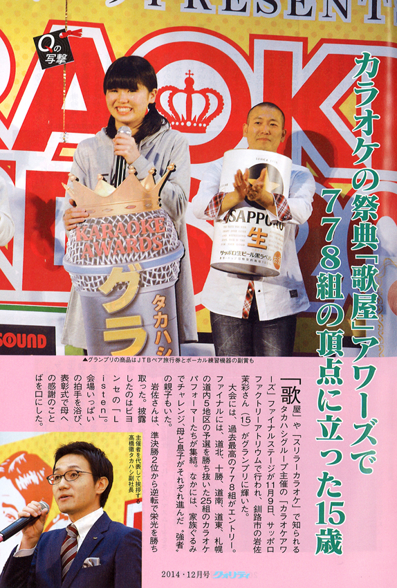 月刊クォリティ12月号にカラオケアワーズ記事が掲載されました