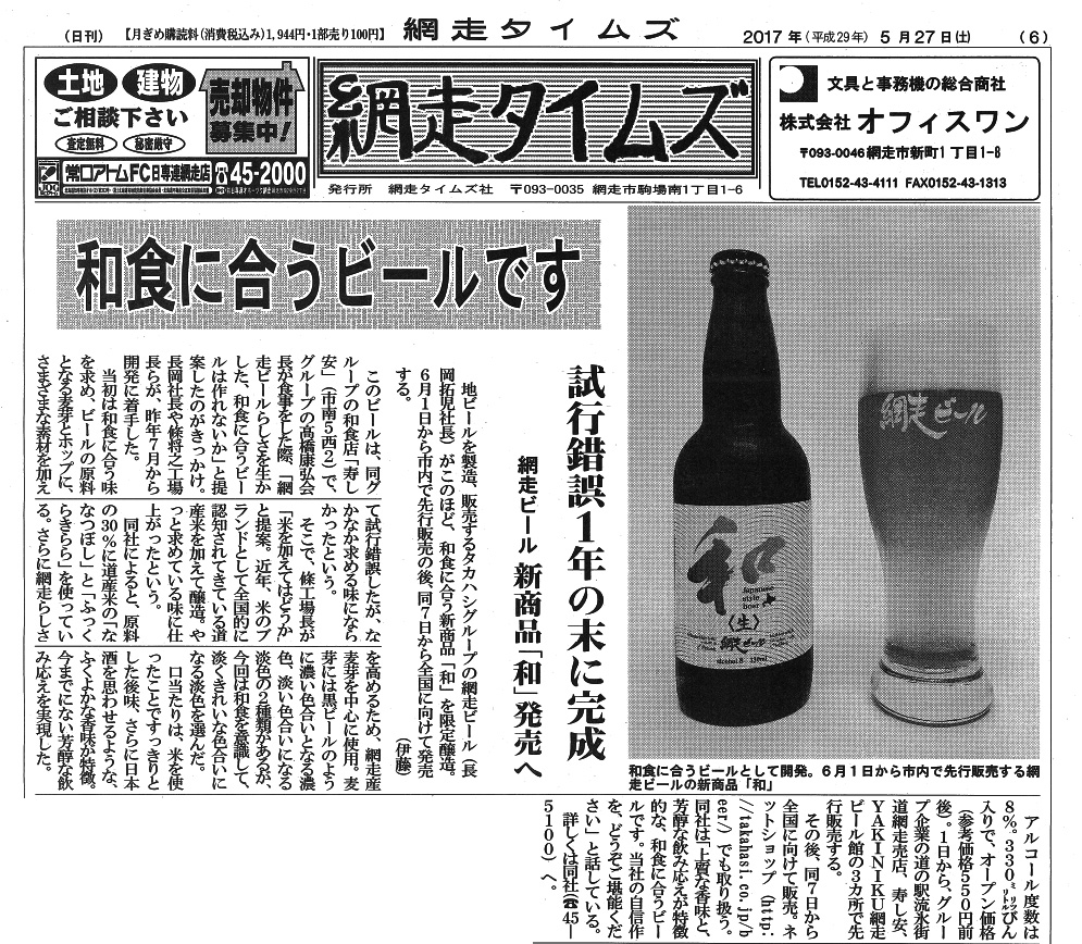 網走タイムズに記事が掲載されました