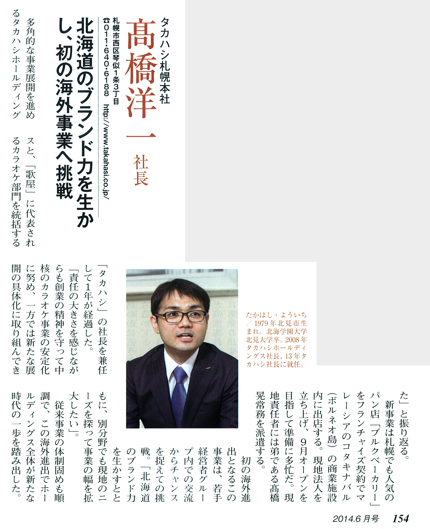 財界さっぽろ6月号にタカハシグループ記事が掲載されました。