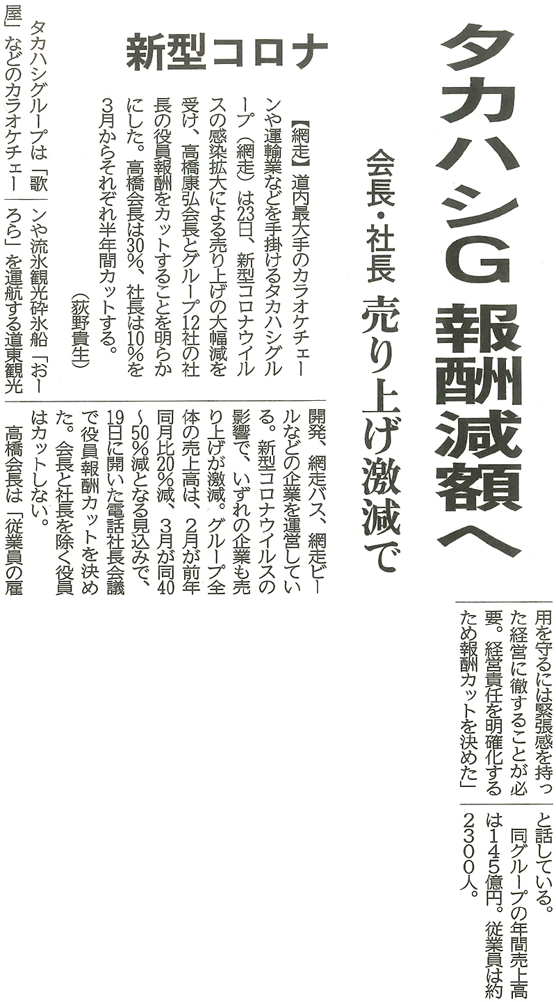 北海道新聞に掲載されました